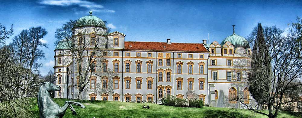 French Garden extends south of the castle as a baroque court garden originally designed by French landscape artists in the seventeenth century. Later transformed into an English-style park, the garden features manicured lawns, symmetric paths, a walkway flanked by towering lime trees, colorful flowerbeds, meadows, a central fountain, water features, and various sculptures that provide peaceful green space for walking and relaxation.