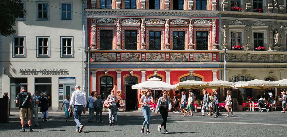 From Fischmarkt, you follow Barfüsserstrasse, a charming historic pedestrian connection between major squares, lined with beautifully preserved medieval buildings housing restaurants, shops, and cafes. The street's architecture represents various developmental periods, with half-timbered houses, stone facades, and traditional German architectural elements creating picturesque walking experiences. Local businesses operating from these historic structures offer traditional Thuringian cuisine alongside modern retail shopping.