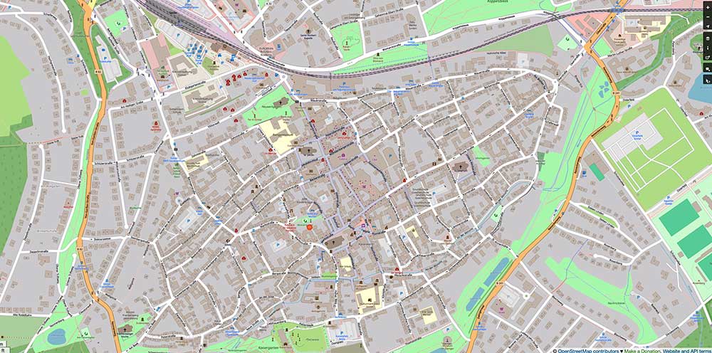 Kornstraße reflects the grain trade with its half-timbered merchant houses dating back to the 16th century, once serving as a commercial hub for cereal goods. The street today hosts cafes, craft stores, and historic inns, revealing architectural details like ornate gables, carved beams, and old shop signs while connecting directly into the central pedestrian network.