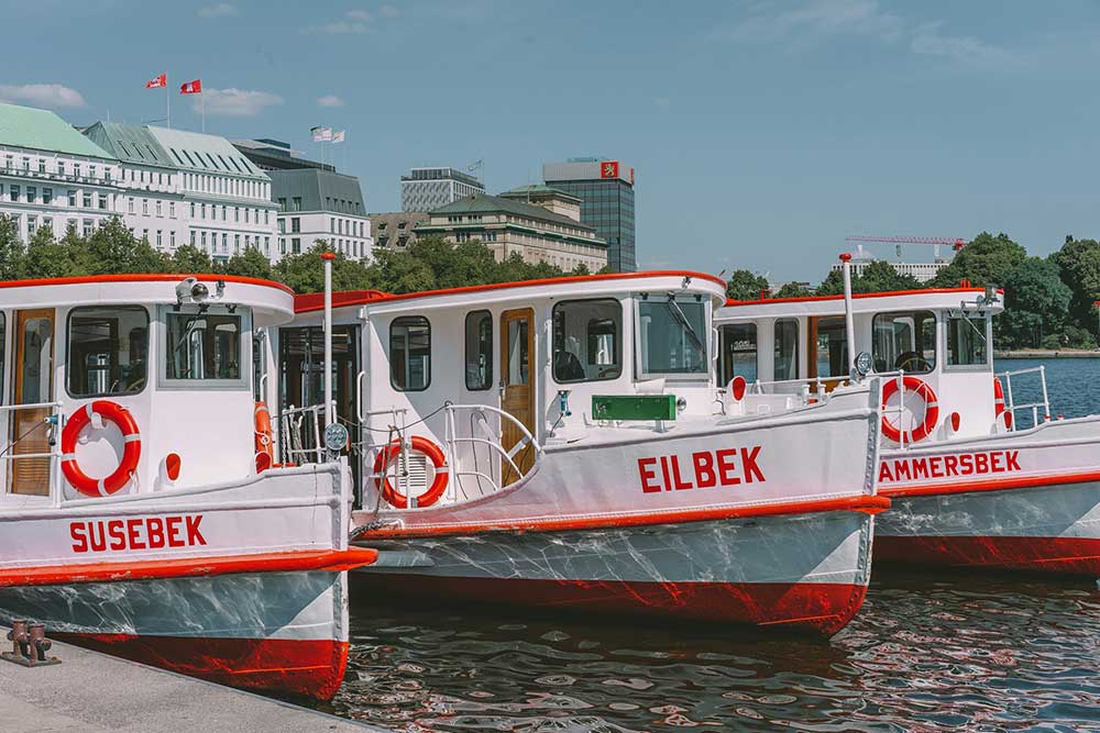 Alster Lakes encompass two connected artificial lakes, Binnenalster and Aussenalster, surrounded by promenades, parks, and residential neighborhoods offering boat rentals, scenic walks, and skyline views. These central water features create unique urban recreation opportunities within Hamburg's dense city center, providing peaceful contrast to the busy commercial districts.