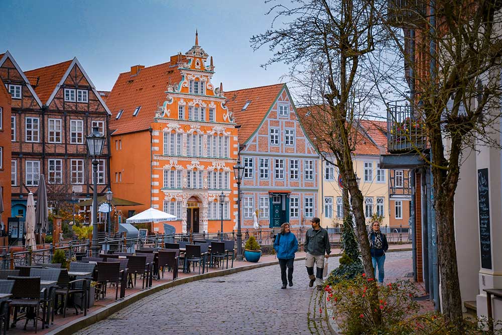 The historic Alte Hansestrasse showcases well-preserved half-timbered houses, medieval architecture, and examples of traditional North German building styles, while Pferdemarkt represents a historic square that once served as a horse market and now features traditional buildings and surrounding architecture, serving as a quiet area for walking.
