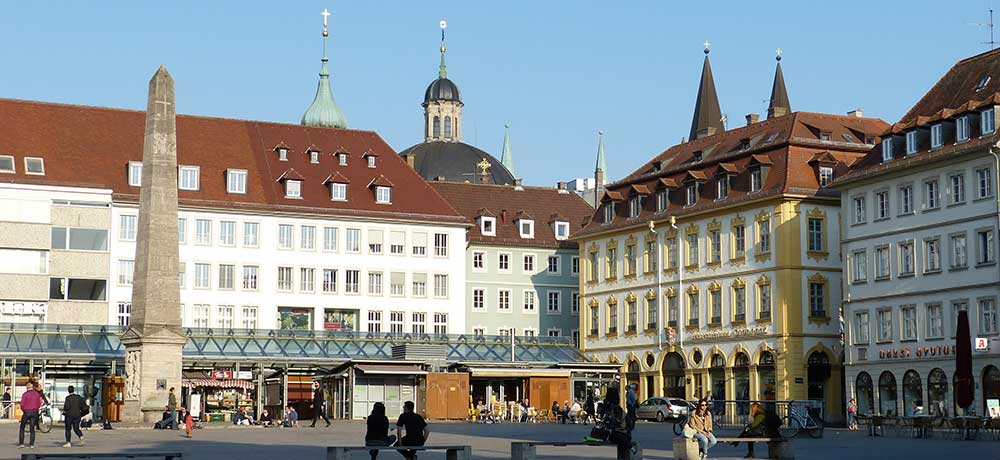Marienkapelle (St. Mary's Chapel) stands as a striking example of Gothic church architecture directly on the market square. The ornate spire and distinctive facade create a visual focal point that blends sacred architecture with the commercial activity surrounding it. Inside, visitors find the tomb of master builder Johann von Guttenberg and other notable artworks, despite wartime damage that required meticulous reconstruction. The chapel functions as both an active place of worship and a central landmark that demonstrates the integration of religious life with urban commerce.