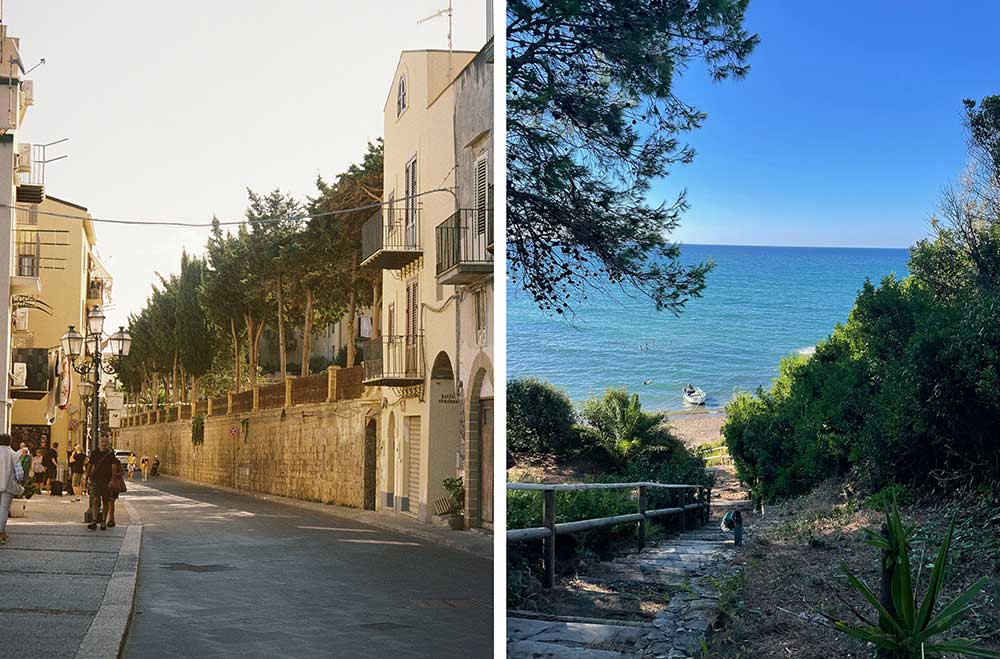 Lungomare Beach: The town’s golden beach arcs alongside the medieval centre, perfect for swimming, sunset walks, and stunning views of La Rocca looming above.