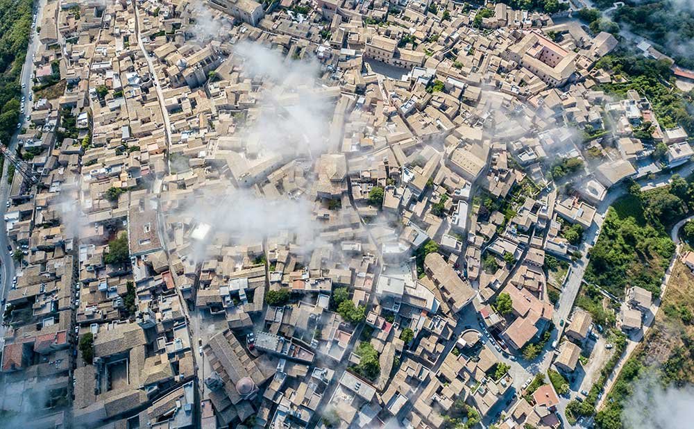 Medieval streets wind through the compact town center in irregular patterns following the natural topography of the rocky summit. Buildings constructed from local grey stone show Norman and later medieval craftsmanship with thick walls, small windows, and sturdy construction suited to the exposed mountain environment. Many structures house craft workshops and small shops selling ceramics decorated with traditional Sicilian patterns, handwoven textiles including rugs produced on traditional looms, and local food products such as almond pastries and marzipan fruits that represent the town's confectionery traditions.
