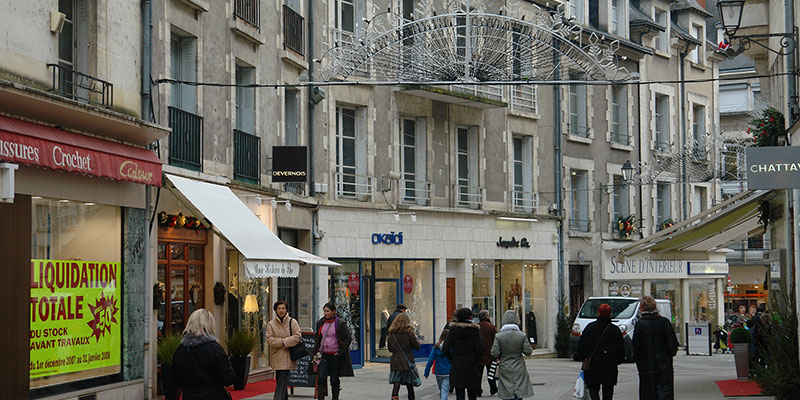 The main pedestrian street of the Old Town is rue Saint-Lubin which leads right into the major square, Place Louis XII. This shopping district of Blois has a half a dozen other pedestrian and semi-pedestrian lanes that are really comfortable for walking around in.