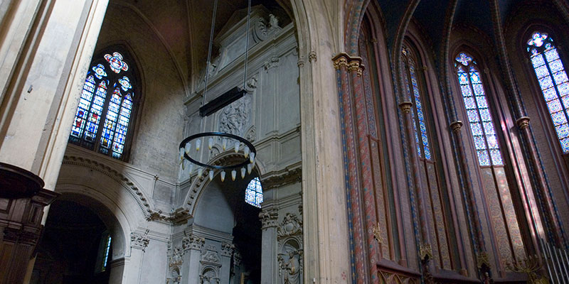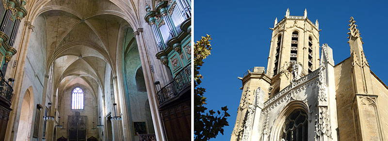 The Cathedral of St-Sauveur is a church of very early origin, displaying a wide range of styles from Romanesque to Gothic, and Baroque. It is believed some parts go back to late the Roman 5th century period, such as the columns of the octagonal Baptistery that’s said to occupy the site of a temple of Apollo. The Baptistery contains eight antique columns, six of them in green marble and two in granite, with the capitals delicately carved in white marble.