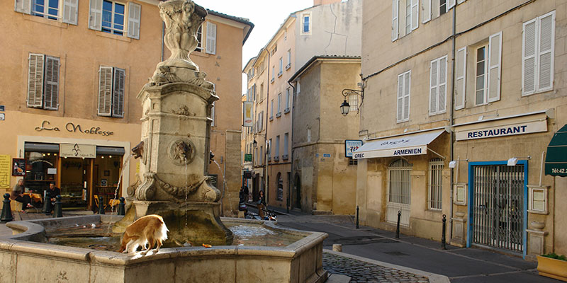 Aix has one of France’s best collections of narrow lanes for that pleasant stroll, something like a miniature, old-fashioned Paris without the noise, crowds or congestion. This lovely neighborhood is a curving grid of more than 30 streets that are all entertaining to walk along. This is French living and urban planning at its best, with fountains, benches, trees, cafes all around. Walking these narrow lanes will be delightful no matter where you go, especially when you come across a little intersection with a fountain, such as Place des Tanneurs, the kind of little surprise that you'll find around many corners.