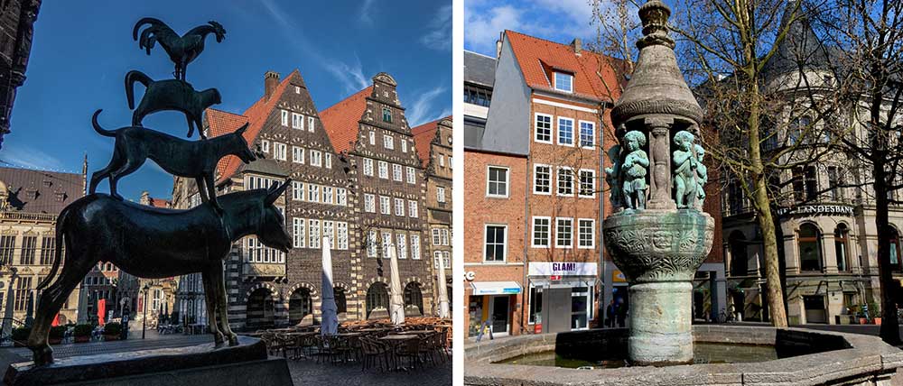Historic Heart: Town Hall, Roland, and the Schnoor At the center of Bremen’s historic core is the Marktplatz, the main city square. Here, you'll find the majestic Bremen Town Hall, a historic building on Marktplatz noted for Weser Renaissance architecture and government use. Right in front of it stands the Bremer Roland, a large stone statue on Marktplatz symbolizing market rights and freedom. A short walk from the town hall, you’ll discover the bronze Bremen Town Musicians Statue, a sculpture representing the fairy tale characters associated with Bremen.