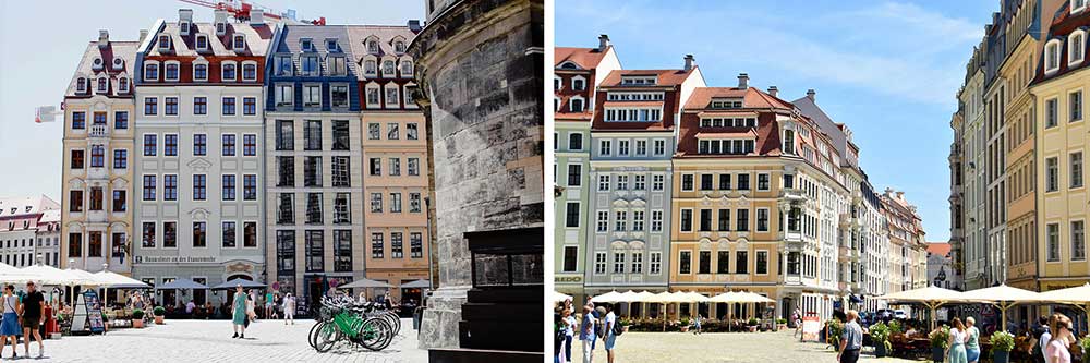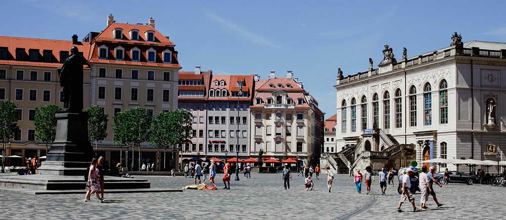 Neumarkt Square serves as the historic central marketplace and Old Town hub, with the Frauenkirche as its centerpiece. The large pedestrian square is surrounded by reconstructed baroque townhouses, cafes, restaurants, and shops, creating an atmospheric gathering place that hosts regular markets and events.