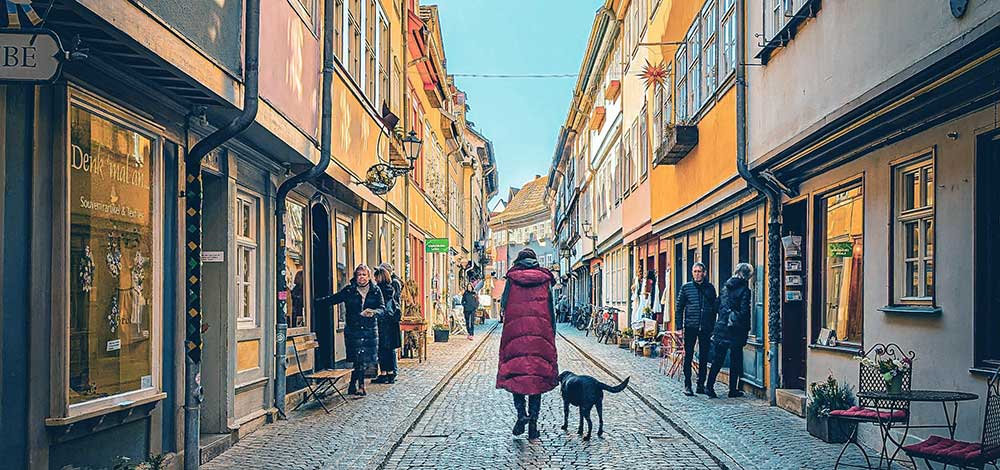 Just beyond lies one of the most extraordinary sights in Europe: the Krämerbrücke, or Merchants’ Bridge. At first glance it seems like any other medieval bridge, but then you realize that it is fully lined with houses and shops, 32 in total, perched across the span of the river Gera. Walking across it feels like stepping into a fairy tale. Each building holds a surprise: galleries, artisan workshops, jewelers, toy stores, and cozy cafés where you can watch the world pass by on the bridge below. It has been a working bridge for more than six centuries, making it one of Europe’s oldest inhabited bridges, and it remains one of Erfurt’s most beloved icons.