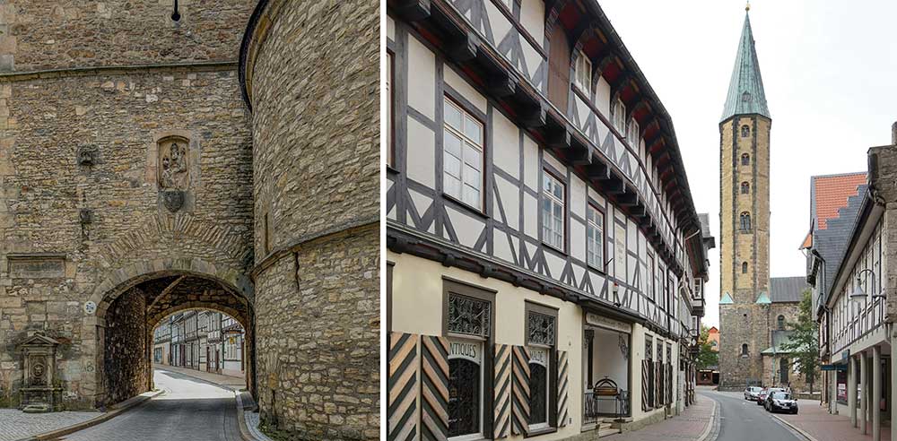 The intimate medieval atmosphere continues along Mauerstraße, one of Goslar's oldest streets following the line of the medieval town walls, lined with well-preserved half-timbered houses, small artisan shops, and quiet cafes. This street offers leisurely strolls far from the bustle of the main squares, with decorative details and atmospheric corners that provide both picturesque architecture and authentic old-town charm.