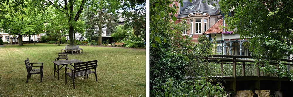 Rosenstraße maintains the characteristic narrow width and intimate atmosphere of historic German city centers with continuous centuries of development and architectural adaptation, while Klapperhagen offers a quiet street with picturesque houses and access to green areas near the river and old town, providing a peaceful walking path that offers a different perspective on the town's architecture and layout.