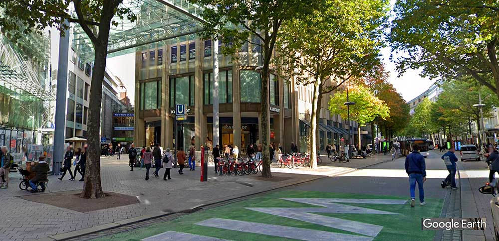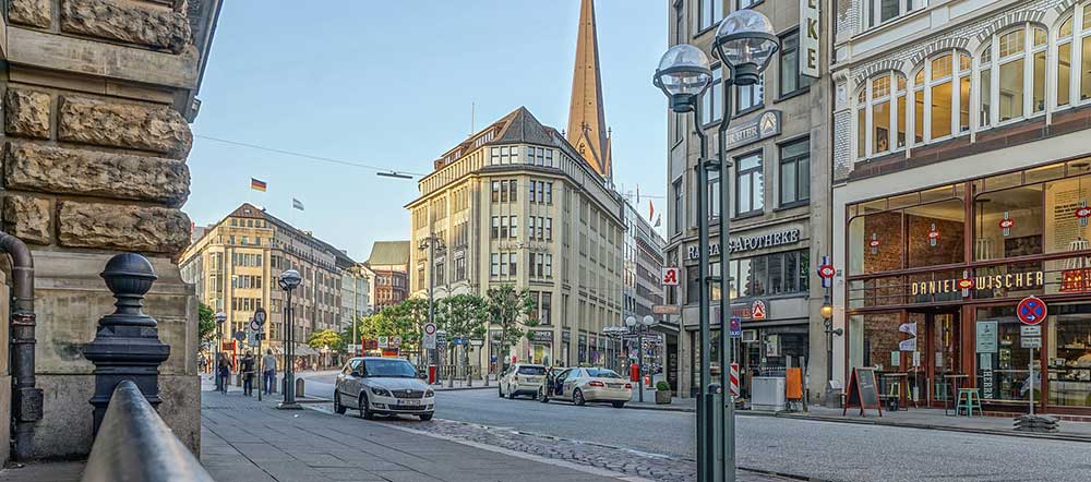 Jungfernstieg combines lakeside promenade with shopping street along the Binnenalster, lined with cafes, department stores, and open spaces popular for walking, boat tours, and city skyline views. Mönckebergstrasse serves as the main shopping thoroughfare in the city center with department stores, boutiques, international brands, and historic buildings. Spitalerstrasse provides additional pedestrian shopping in the historic Altstadt with modern shops, cafes, and high foot traffic.