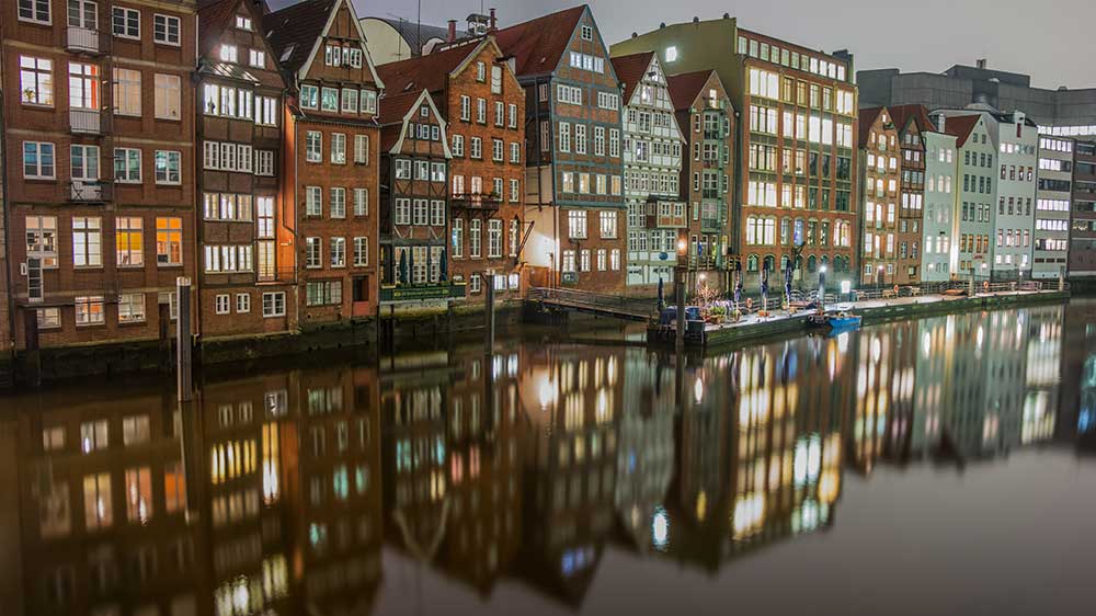 Speicherstadt, the UNESCO World Heritage historic warehouse district, showcases red brick buildings, canals, bridges, and cobblestone streets that house attractions including Miniatur Wunderland, the world's largest model railway exhibit featuring detailed miniature landscapes and scenes from around the world. The Poggenmuhlen Bridge provides one of the most photographed views of these historic warehouse canals and the distinctive Wasserschloss building. Nikolaifleet adds to the historic waterway experience as a narrow canal in the old town with traditional boats, timber houses, and pedestrian bridges.