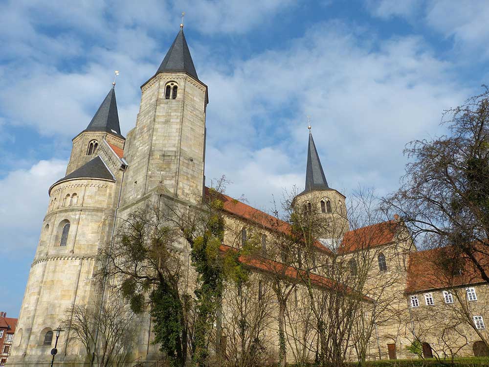 St. Michael's Church (Michaeliskirche) represents one of the most significant examples of Ottonian Romanesque architecture in Germany as a UNESCO World Heritage Site. Built in the early 11th century (around 1033), the church features distinctive twin towers, unique symmetrical design, and contains remarkable medieval art including a painted wooden ceiling from the 13th century depicting the Tree of Jesse and the genealogy of Christ. Although heavily damaged during the war, the church was reconstructed preserving its original layout and aesthetic. Its elevated position offers views of the surrounding area, and its architectural harmony and historical importance as a center of medieval learning make it essential for visitors interested in early Germanic Christian culture.