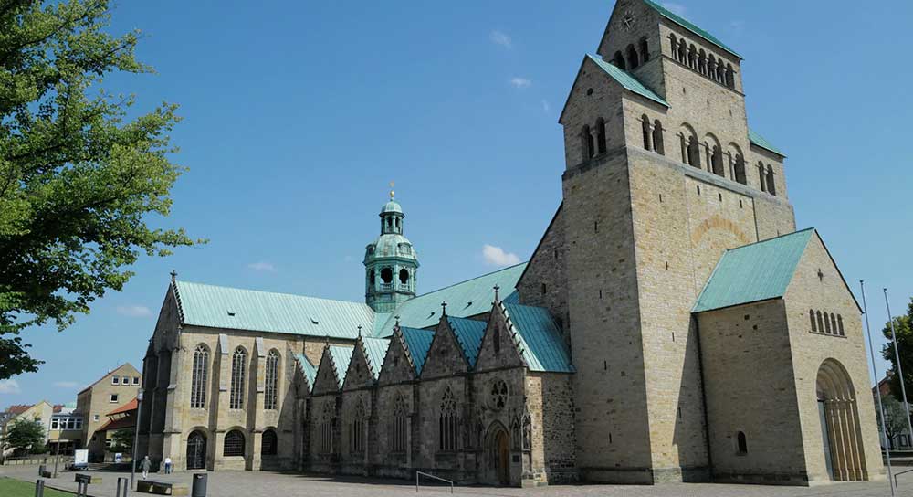 Hildesheim Cathedral (Mariendom) stands as a UNESCO World Heritage Site and important religious and architectural landmark dating back to the 9th century, with the current structure rebuilt after wartime destruction. The cathedral houses the famous thousand-year-old rose bush that grows against its eastern wall, creating a living symbol of the city's endurance. The interior contains the renowned Bernward Doors and Christ Column, masterpieces of medieval bronze casting from the 11th century that demonstrate the artistic sophistication of the Holy Roman Empire period. The cathedral's treasury displays an exceptional collection of medieval religious artifacts including manuscripts, liturgical vessels, and textiles, while the cloister courtyard contains the legendary Thousand-year Rose.