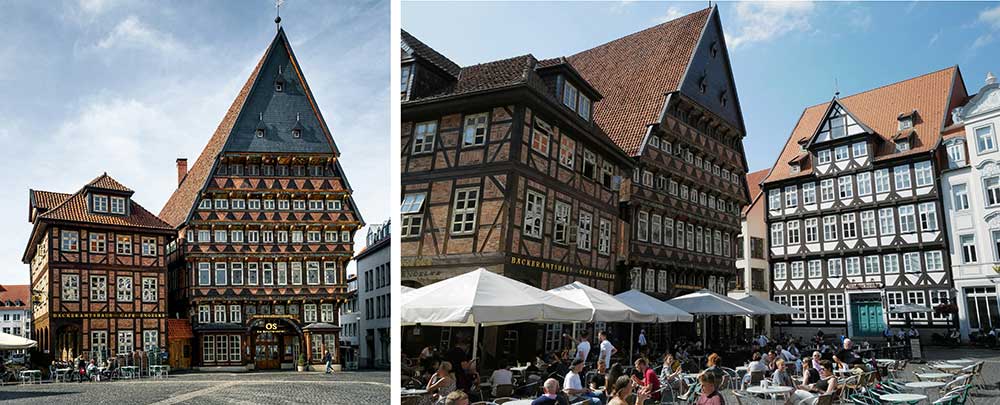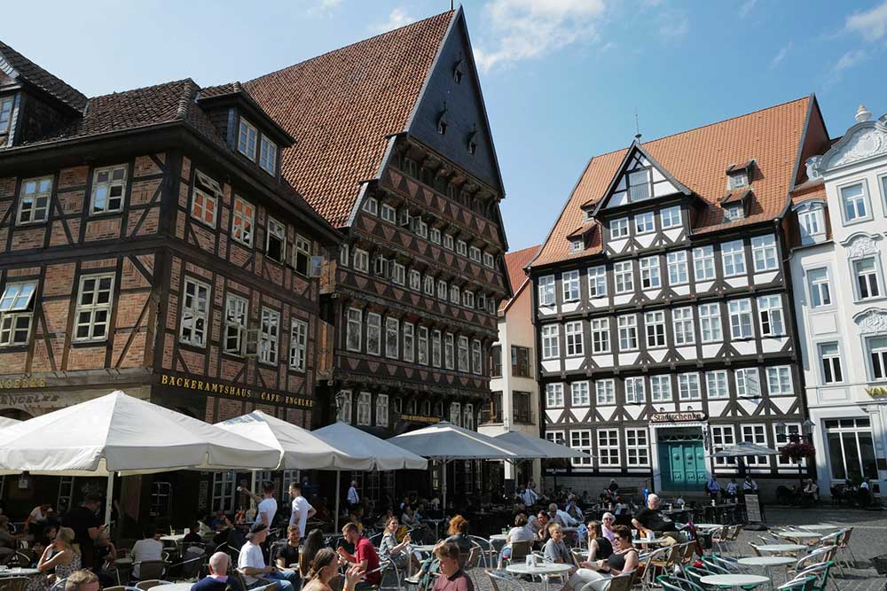 The Historic Market Square (Marktplatz) serves as the reconstructed heart of Hildesheim, originally created in the 13th century when the small Saxon town gained status as a major trading and merchant center. The ensemble of Renaissance guildhalls, municipal buildings, and patrician houses has been carefully reconstructed since the 1980s after destruction during World War II. The colorful half-timbered facades represent different periods of German architecture and now house cafes, shops, and restaurants. Notable structures include the Knochenhaueramtshaus, Bäckeramtshaus (Baker's Guild Hall), Wedekindhaus, and a Renaissance fountain from 1542. The square hosts regular markets and cultural events, maintaining its role as the city's social center.