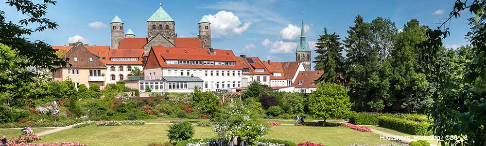 This interactive Google My Map shows locations with information that can be displayed by clicking on the symbols. It has sidebar index and displays best in full-frame by clicking the box in top-right. The map can be used on your phone or tablet when visiting a city, showing you where to go and describing the sights. You are welcome to make a copy as described here. Hildesheim can be visited as a daytrip from Hannover, 31-minutes by train.