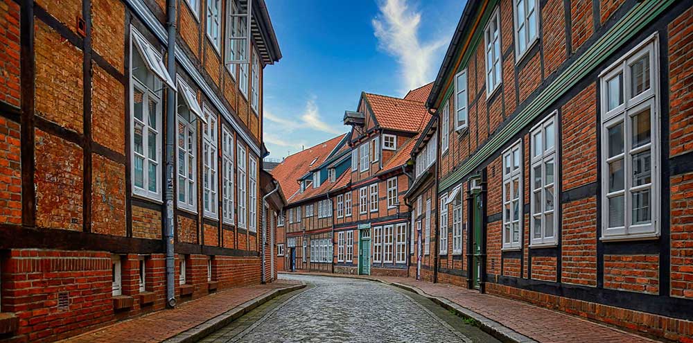 The historic Alte Hansestrasse showcases well-preserved half-timbered houses, medieval architecture, and examples of traditional North German building styles, while Pferdemarkt represents a historic square that once served as a horse market and now features traditional buildings and surrounding architecture, serving as a quiet area for walking.