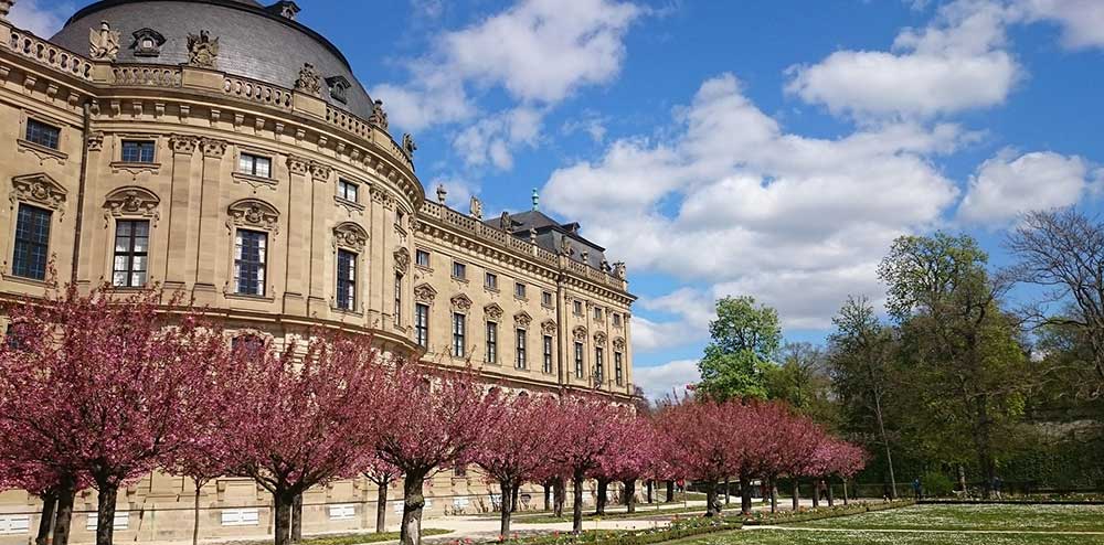 Veitshochheim Palace and Court Garden located outside Wurzburg served as summer residence for prince-bishops, with the main attraction being extensive court garden representing well-preserved rococo garden design with French influence. The garden features intricate pathways, statues, water features, and carefully arranged plants and trees while the small palace provides glimpse into the more relaxed lifestyle of the prince-bishops. The destination offers tranquil and scenic contrast to urban sites of Wurzburg, popular for day trips that combine palace architecture with elaborate garden design representing the leisure culture of ecclesiastical rulers.