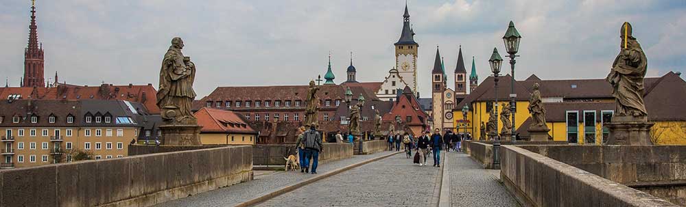 Alte Mainbrucke (Old Main Bridge) ranks among Wurzburg's most recognizable landmarks, originally constructed in the 12th century and reconstructed in later periods. The pedestrian bridge features statues of saints and historical figures added during the 18th century, similar to Prague's Charles Bridge, creating a gathering place for locals and visitors who often enjoy Franconian wine from nearby taverns. The bridge connects the Old Town to Marienberg Fortress while providing excellent views of the river and surrounding architecture, combining daily life with historic significance.
