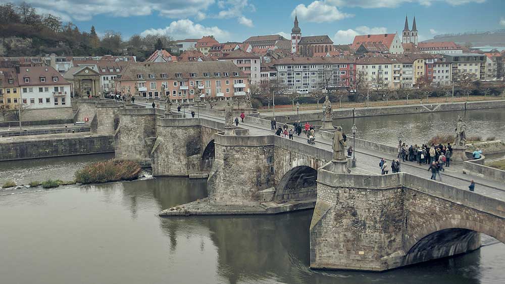 Old Main Bridge from 1473 connects the old town with Marienberg Fortress through historic stone construction featuring twelve baroque statues of saints and historical figures. The pedestrian-friendly crossing offers excellent views of the fortress, vineyards, and Main River while supporting local tradition of enjoying Franconian wine while admiring scenery. Street musicians often perform during pleasant weather, creating both functional river crossing and scenic viewpoint that represents centuries of engineering and artistic achievement.