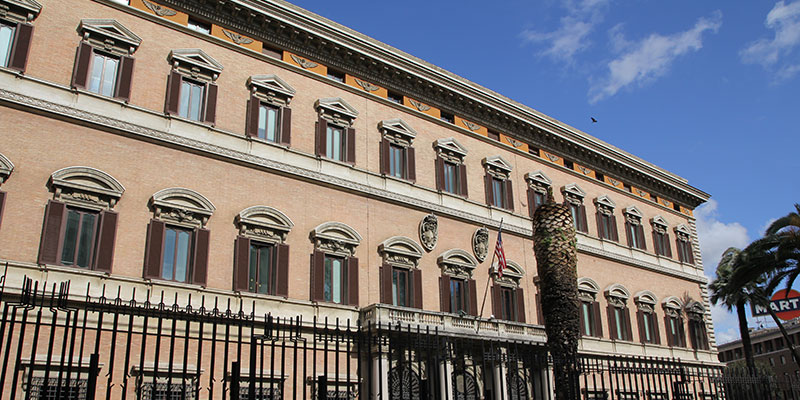 The American Embassy is 400 meters north on Via Veneto, if you lost your passport, otherwise there is no need to take a look at this former palace surrounded by high fence.