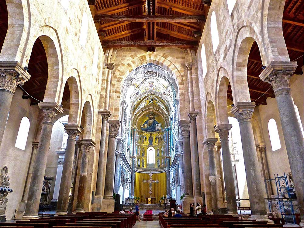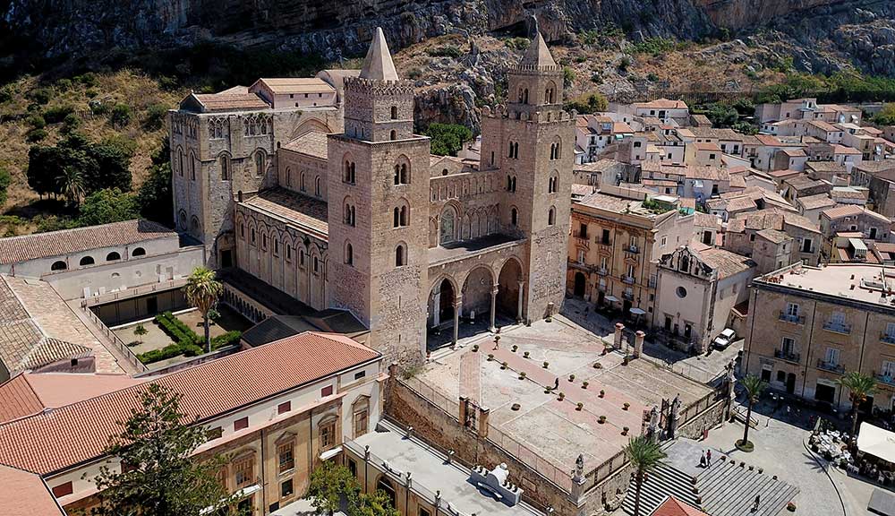 Cefalù Cathedral (Piazza del Duomo): A UNESCO World Heritage site, this massive Norman cathedral was commissioned by King Roger II in 1131. It is famous for its towering twin steeples and the breathtaking Byzantine mosaic of Christ Pantocrator inside the apse. The Norman cathedral dominates the town with its twin towers and fortress-like appearance. Built in 1131 by Roger II, this twin-towered basilica dazzles with magnificent Byzantine mosaics including the Christ Pantocrator in the apse. The church represents one of Sicily's finest examples of Norman-Arab-Byzantine architecture and holds UNESCO World Heritage status. its Arab-influenced cloister and bronze doors blend Byzantine splendor with Sicilian heritage, anchoring the town's medieval charm.