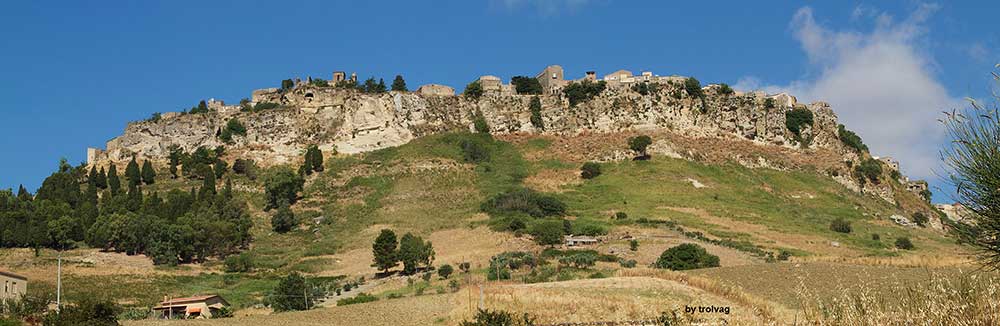 Beyond the castle, the path continues to the Rocca di Cerere, the rocky outcrop at the western extremity of the ridge. This site held the ancient Temple of Demeter, goddess of agriculture and grain, though no visible remains of the temple survive. The position offers another perspective on the surrounding landscape, with valleys extending in multiple directions and the town of Calascibetta visible across a ravine to the north.