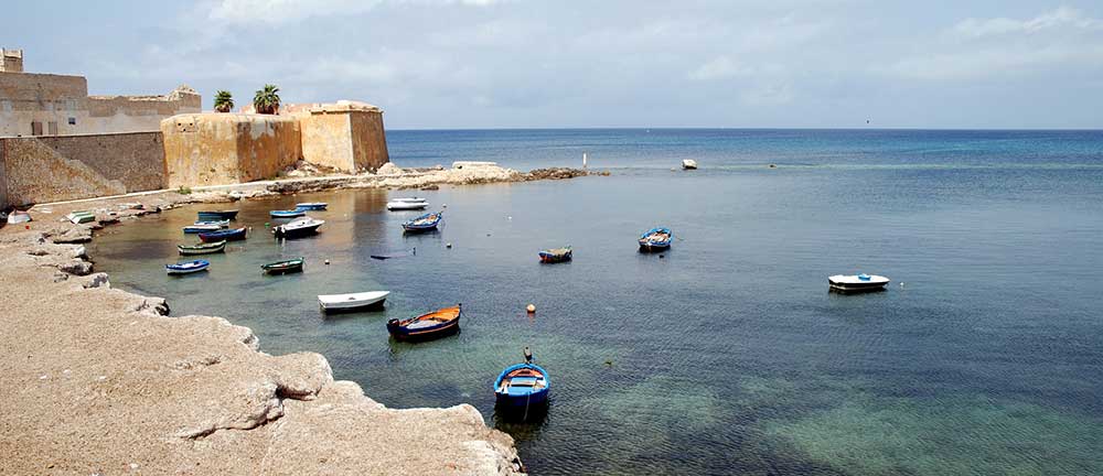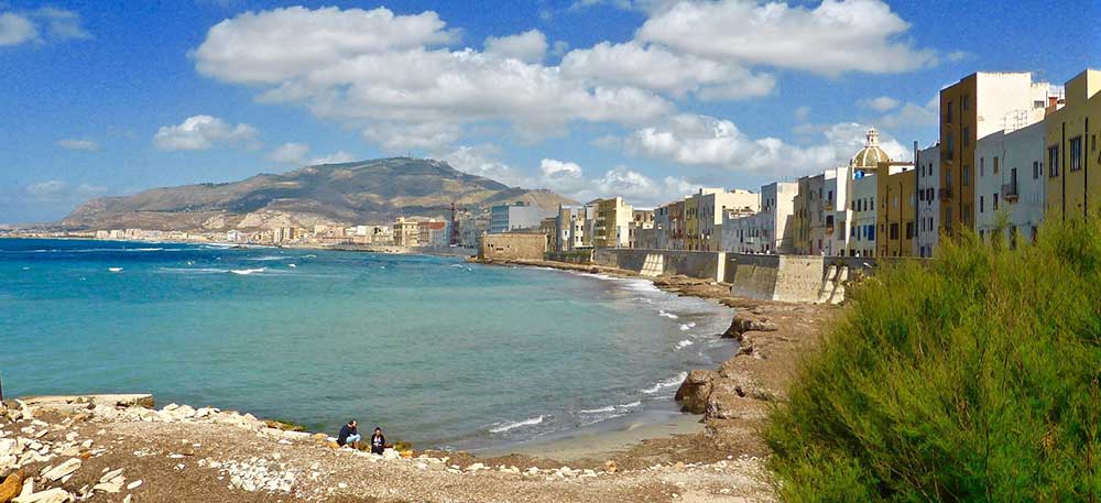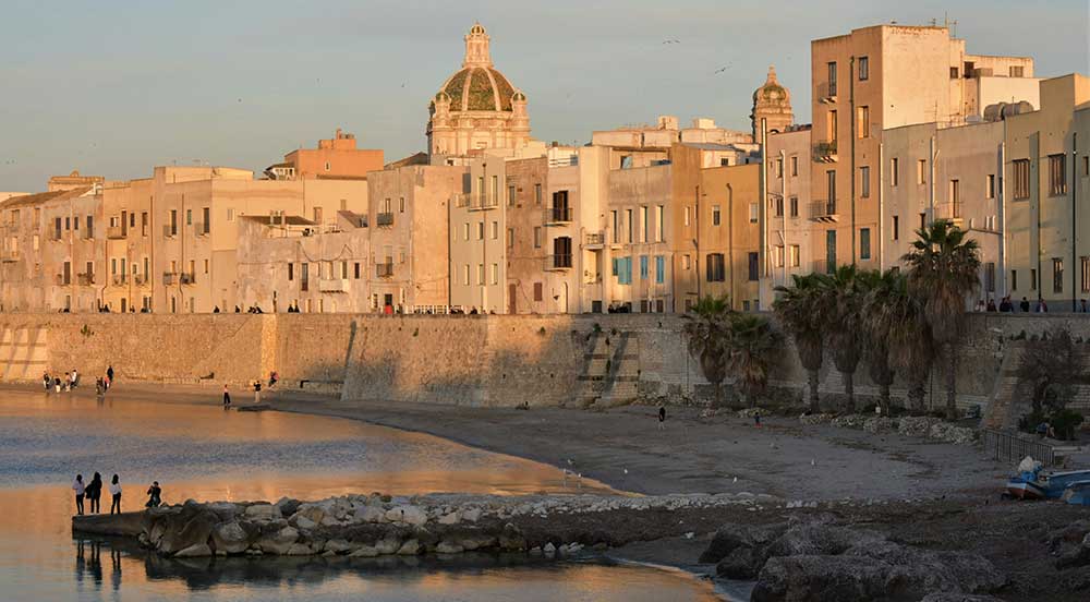 The northern waterfront features the Mura di Tramontana, a kilometer-long section of Spanish-era city walls along the peninsula's northern edge, forming a picturesque promenade for walks. The path follows bastions and viewpoints overlooking the sea, fishing boats, and the distant Mount Erice. Spiaggia delle Mura di Tramontana, a narrow stretch of sand and rocks adjacent to the walls, serves as an urban beach. Lungomare Dante Alighieri extends this promenade beyond the historic center, lined with beaches, bars, and open-air terraces suitable for walks, cycling, and views toward the Egadi Islands.