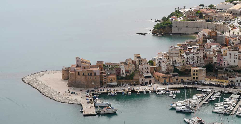 Piazza Mercato del Pesce, adjacent to the market, provides vantage points for harbor views and now hosts exhibitions, concerts, and cultural events under arches framing the sea. Chiesa di Santa Maria del Soccorso, built in the sixteenth century for maritime workers, features a simple facade and serves as the parish church for the waterfront district. Castello di Mare, or Torre della Colombaia, stands on a small island near the port, an example of medieval military architecture visible from the harbor, originally constructed during the Punic Wars and modified through medieval and Spanish periods.
