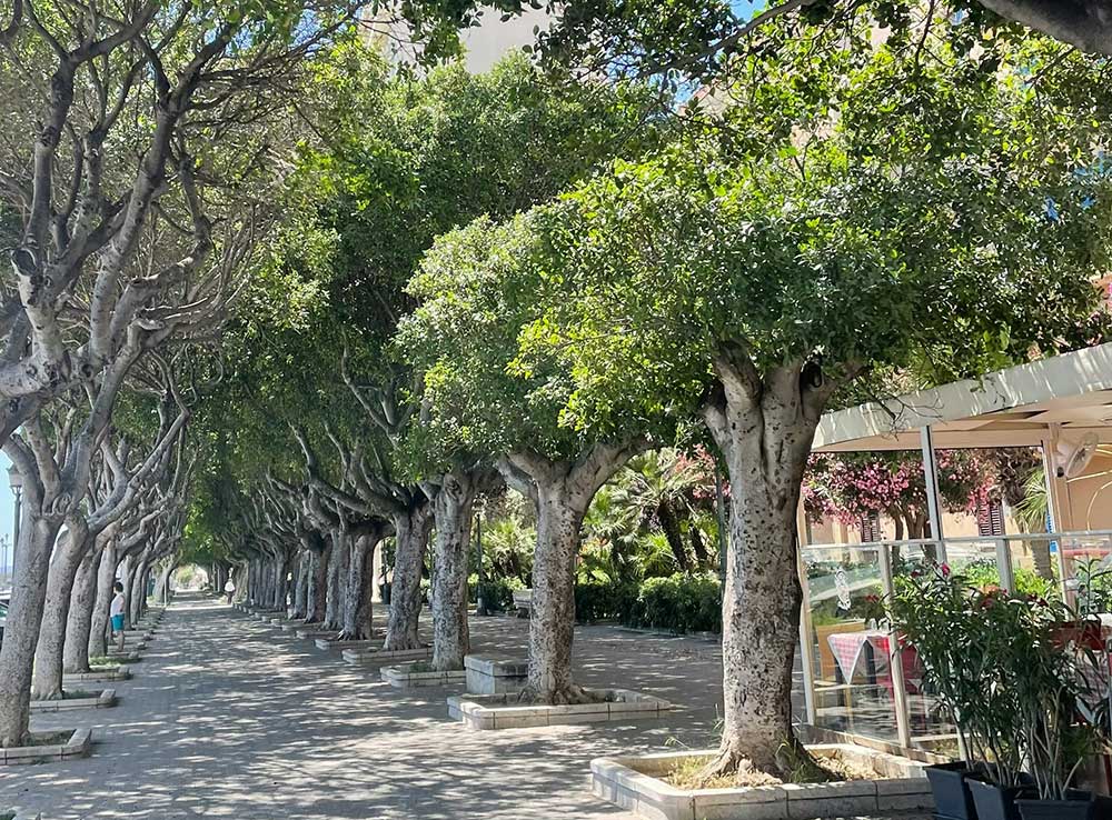 East of the historic center, newer districts expand with broader streets and modern buildings reflecting Trapani's growth beyond the peninsula. Via Giovanni Battista Fardella, the main shopping street, features a mix of local boutiques, international brands, cafes, and restaurants, bustling during the day as a commercial hub. Piazza Vittorio Emanuele, a broad plaza marking the transition between the historic center and newer districts, is bordered by lawns, cafes, and shops, acting as a hub for public events and daily interactions.
