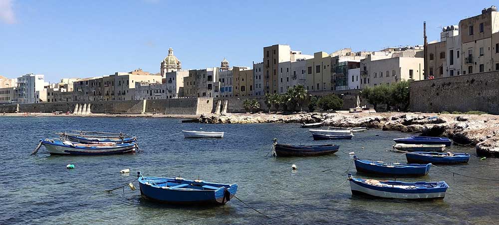 The historic center occupies the peninsula's narrow width with streets running the length of the promontory and alleys crossing between the two waterfronts. The medieval street plan survives with baroque churches including the cathedral and sanctuary of Maria Santissima Annunziata showing reconstruction after various disasters. The fish market near the port operates in covered structure where vendors display daily catch including tuna, swordfish, and seafood from surrounding waters, maintaining commercial traditions connected to Trapani's maritime economy.