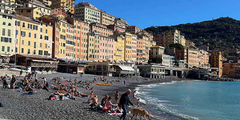 Or maybe you just want to relax and sit on the beach. If you're coming from Genoa, you could take a boat tour organized by Golfo Paradiso instead of taking a train. It's only one hour to get from Genoa to Camogli, and you stay for two or 3 hours, then you can catch the boat back to Genoa. And there's an extension to Portofino and other towns as well, described later. But with these boating possibilities, the many shops, delightful photo ops, tasty restaurants, it all comes back to the beach. That's the main attraction of Camogli, especially for the Italians, who are the main customers here, after all.