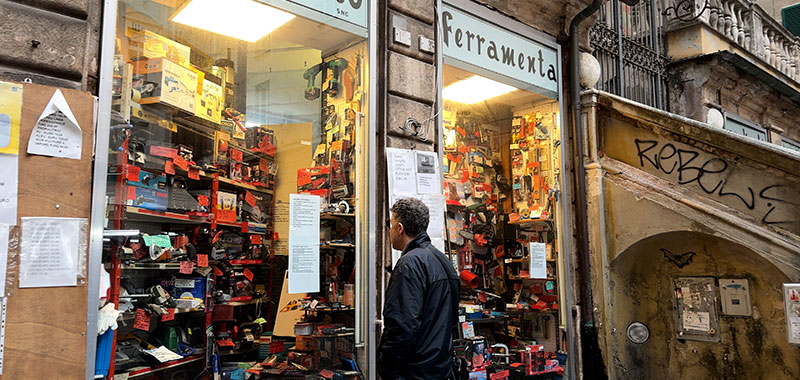 There is a rich diversity of shops open here. You'll see that most of them are for a local clientele. Tobacco shops, hardware stores, and a small supermarket are always good places for savvy visitors to hunt for bargains instead of always eating out and spending a lot of money in restaurants. As we have seen from the very beginning, there is retail at street level, and upstairs, there are lots of apartments. It's a mixed-use neighborhood with shops and homes thriving together.