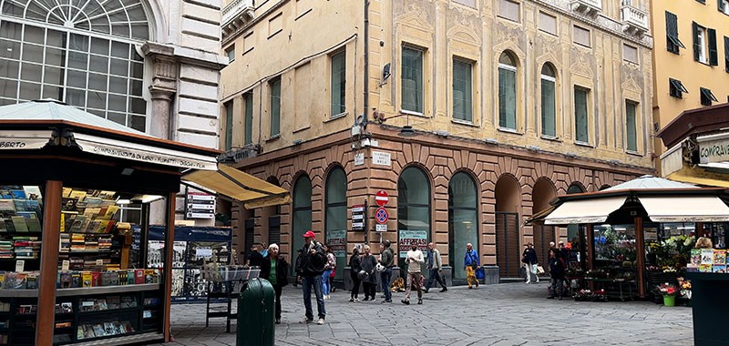 Now changing names again to Via Banchi. The name means Bank Street, reflecting its historical role as a hub for money changers and merchants. It was known for its bustling markets and commercial activities, making it a vital part of Genoa's economic life.