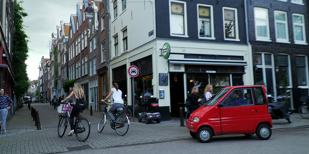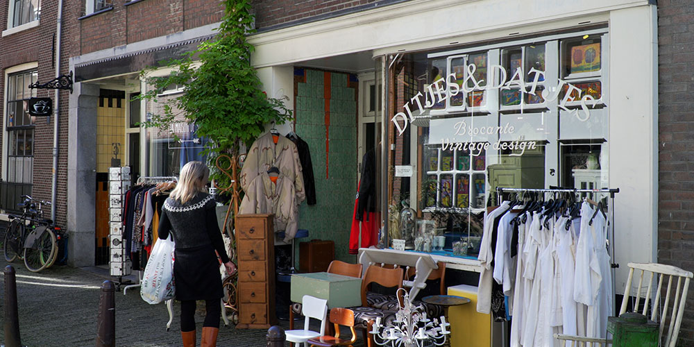 Jordaan is one of the most enjoyable neighborhoods to visit because of its quiet atmosphere and artistic bohemian vibe, something like New York's Greenwich Village or Soho. There's a casual outdoor bar scene and independent small stores offering vintage and handmade items. A few cars might come through, but mostly it's a relaxing place for people to just wander around.