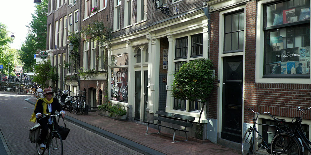 Some canals, like the Egelantiersgracht, are smaller in scale than those famous waterways. They're narrower, shorter, but this gives them much more charm. The Egelantiersgracht canal is just 500 meters long and is so attractive it would be worth walking the whole distance. Then you can go around the block on two other canals while also exploring some of those side lanes. Typical of Jordaan it's a residential neighborhood, but there are always some shops that will catch your interest.