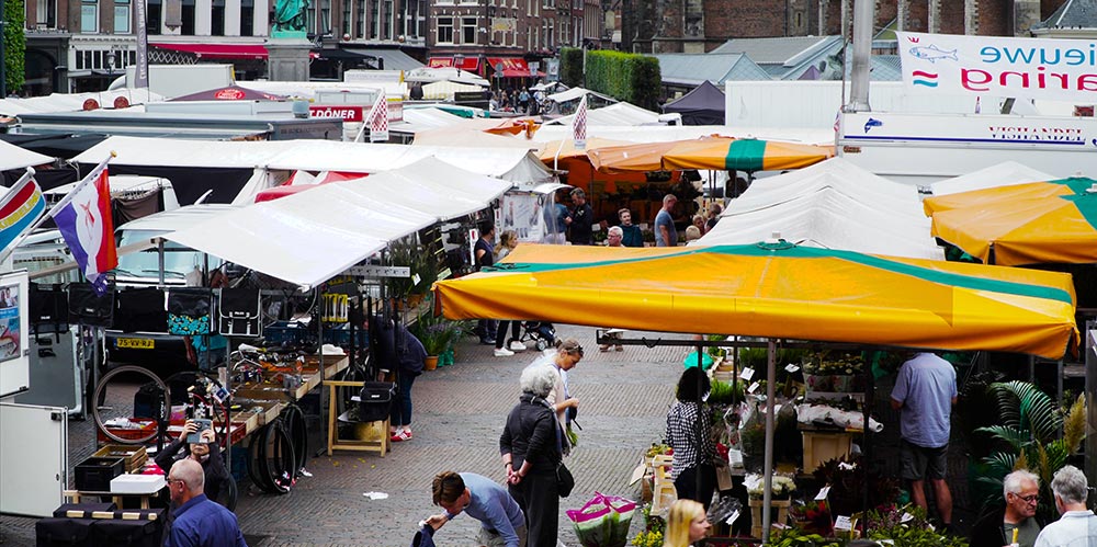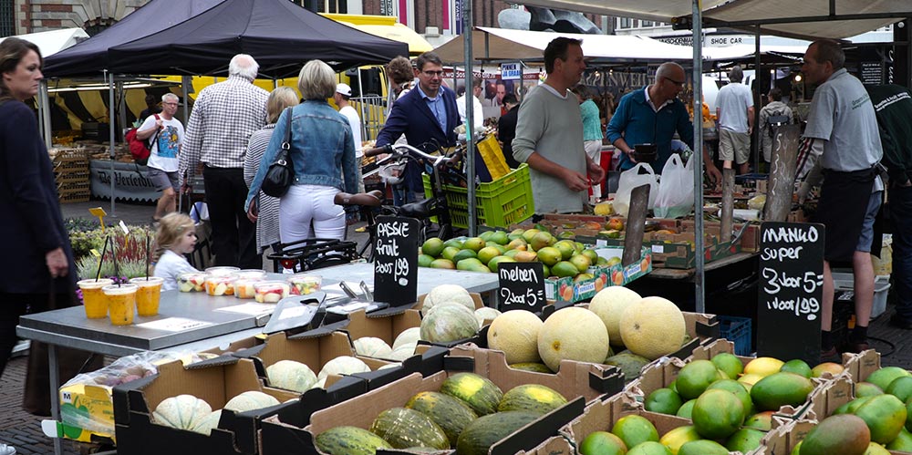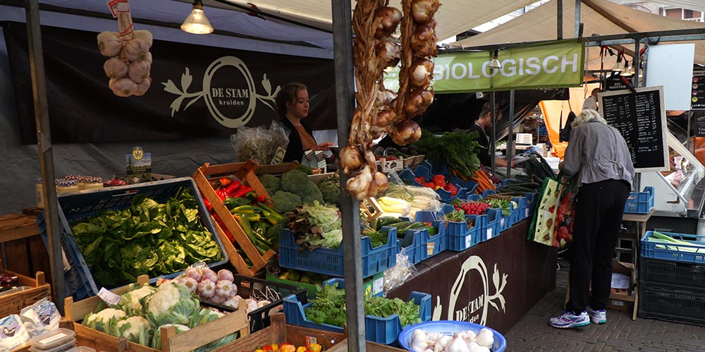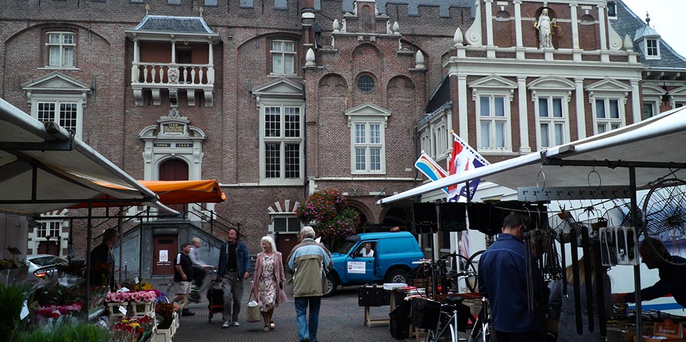 On Saturday mornings the outdoor market at Grote Markt is in full bloom on the main square next to the big church. It’s one of the largest and more lively market squares in all of the Netherlands.