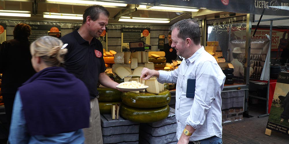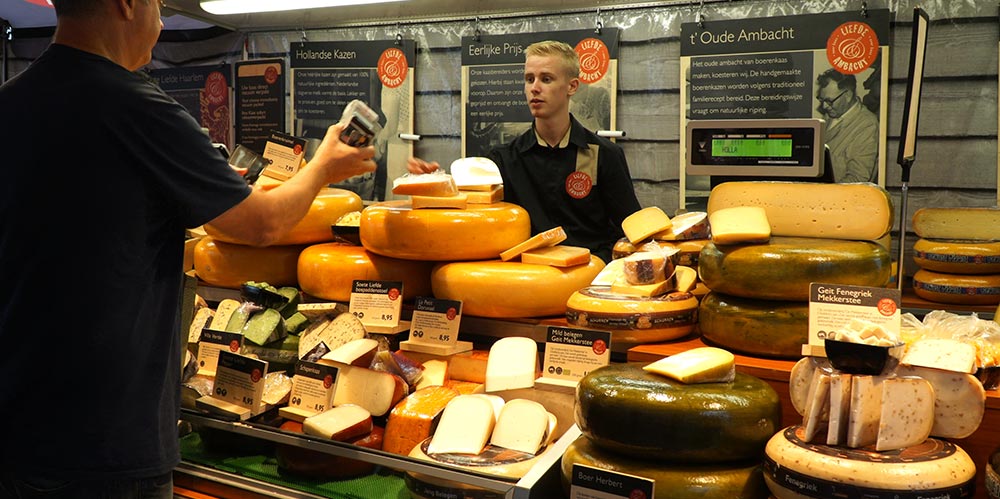 “Yeah almost everything is from Holland except a few. The rest is from Holland. Every cheese is different. Goat cheese, farmer cheese, 30 kinds of cheese I think. You want some? Maybe a taste.