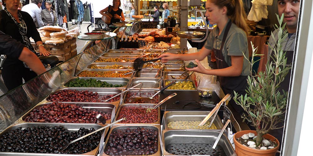 There is always some kind of opportunity for free samples from market vendors so don’t be shy, they want to give it away to entice you to buy, for example the wonderful olives.