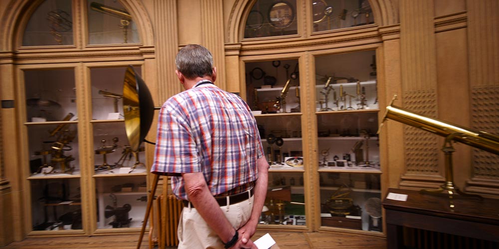 Next we enter a room filled with the variety of scientific instruments including what had been the world’s largest electrostatic generator from the 18th century, old telescopes, microscopes, recording devices, telephones, whatnot. A small darkened room showcases luminescent minerals.