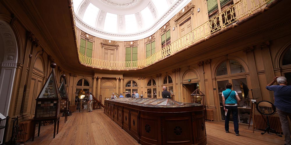 Then we get to the most famous gallery in the museum, the Oval Room, that dates back to its founding in the late 1700s with mineral displays in the center and scientific instruments from the 18th century all around it.