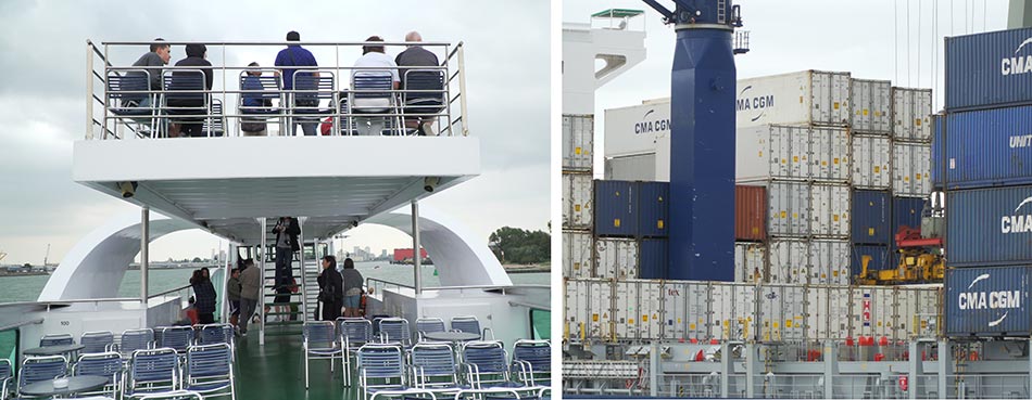 During the 75-minute cruise you’ll likely get a chance to see some container action being loaded or offloaded from a ship, with work done by robots, autonomous cranes acting with minimal human supervision, the only efficient way to deal with such huge volume.