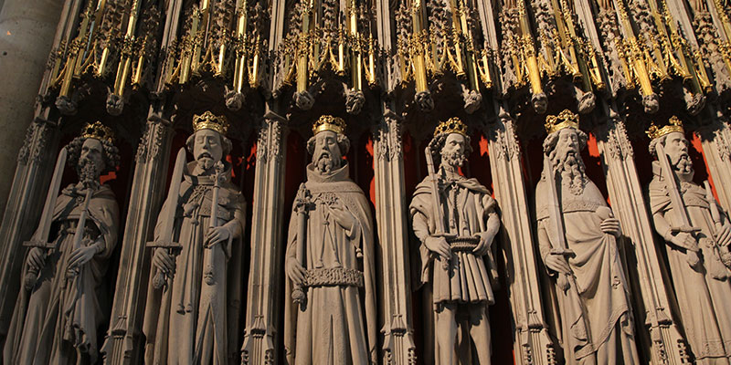 The choir entrance is set in the screen, with stone carvings of the kings of England from William I to Henry VI.