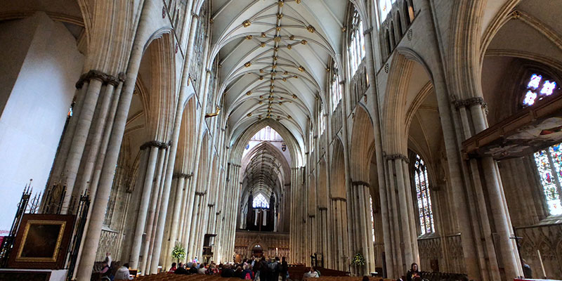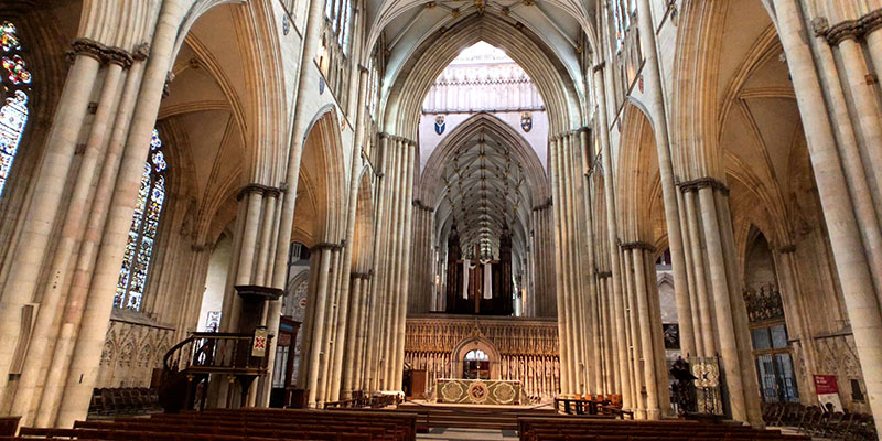 A Cathedral is a church with a bishop, whose seat is called the cathedra, which is where the word Cathedral comes from, seat of the bishop. And the Minster is the seat of the Archbishop of York, the second-most-important position in the Church of England.