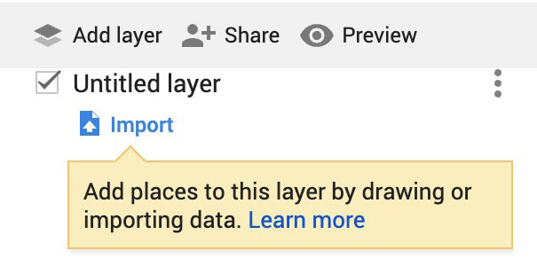 Click the add layer button, and a new layer will be added to your map, listed in the sidebar. Then click the import label that automatically is listed in the new layer.
